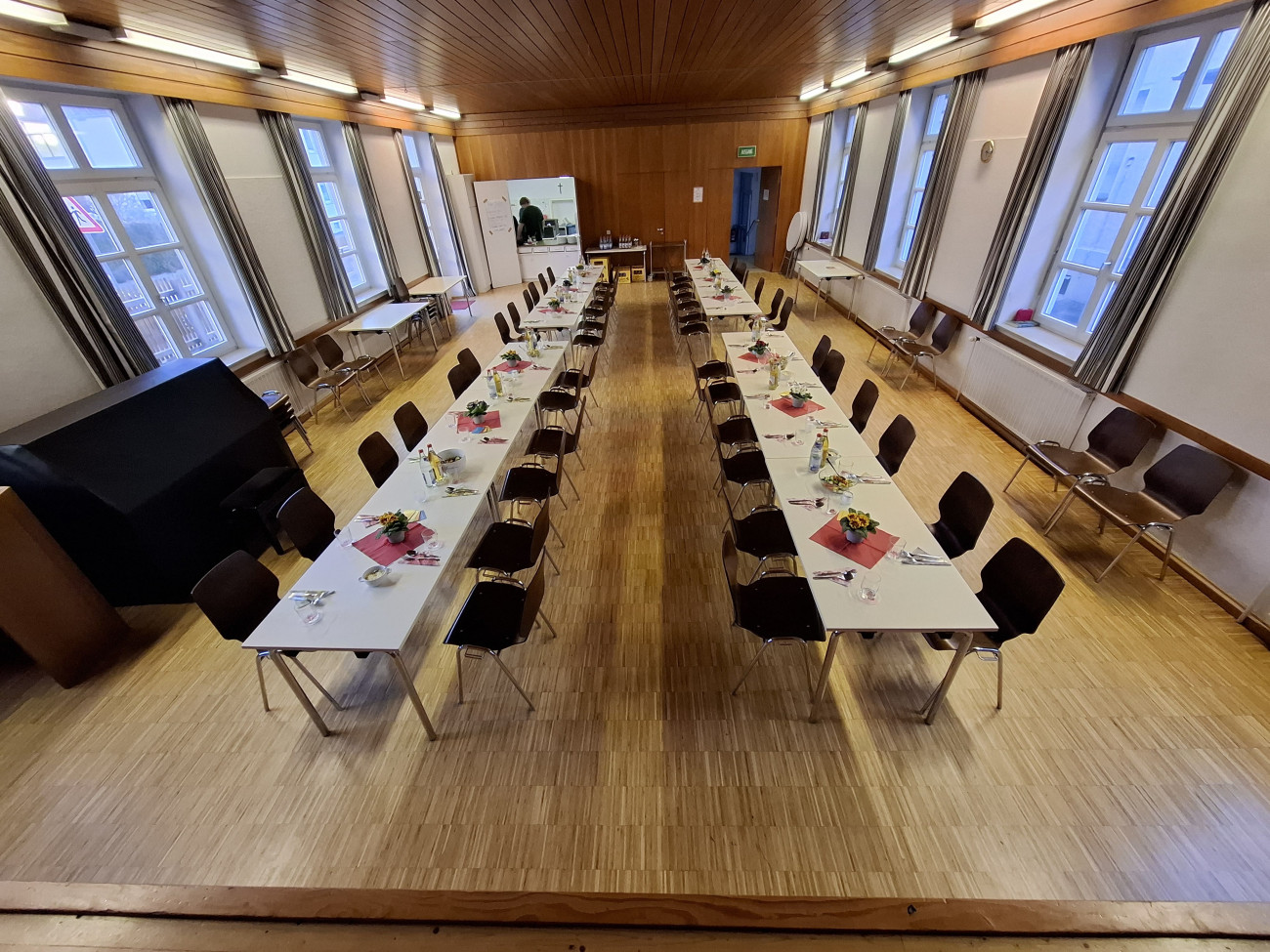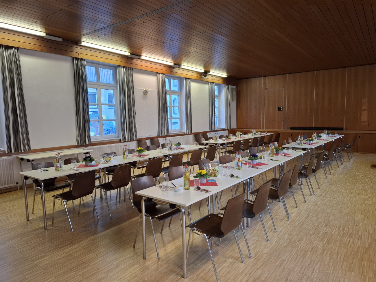 Für die Anmietung des Saales wenden Sie sich bitte zu den Öffnungszeiten an das Pfarramtsbüro.